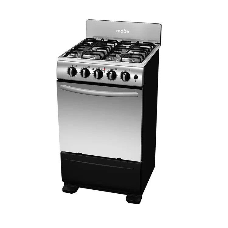 La Estufa MABE GAS 4 PTS INOX EMC5150SNX0 en gris ofrece un quemador Jumbo de alta potencia, horno de 63 litros, termocontrol con válvula de seguridad, gratinador eléctrico, y encendido electrónico por botón. Ideal para una cocina eficiente y segura.